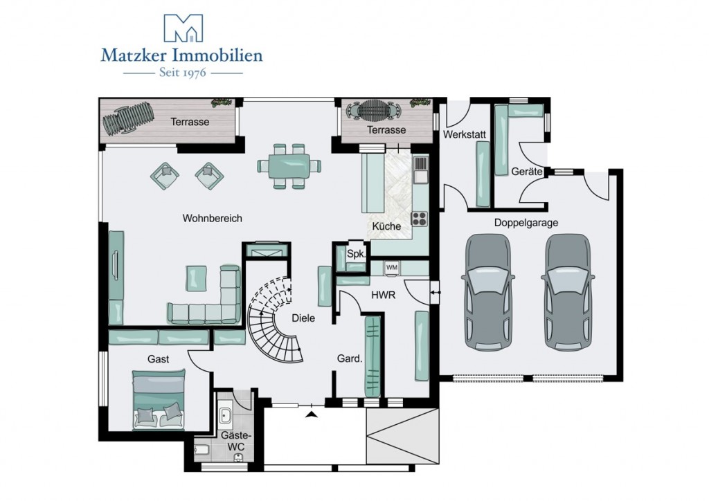 + Doppelgarage mit direktem Zugang und zusätzlichem Stauraum