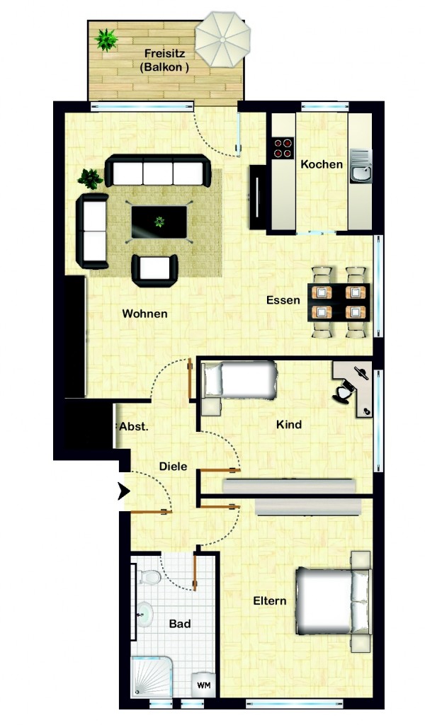 Für die Anmietung ist ein Wohnberechtigungschein (WBS) zwingend erforderlich. Die Wohnung ist nur für einen Haushalt mit mindestens drei Personen und Einkommen gemäß den Wfa-Bestimmungen bestimmt und zu vermieten.